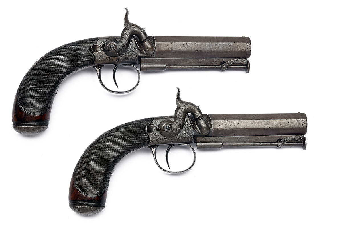 A PAIR OF 28-BORE PERCUSSION SIDE-HAMMER BELT PISTOLS SIGNED TATHAM, LONDON, no visible serial numbers,