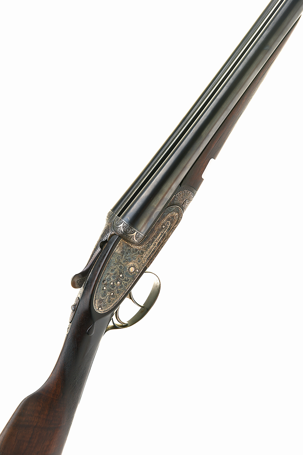 PAIR OF AYA 12-BORE 'NO.2 MODEL' SIDELOCK EJECTORS, serial no. 152278 / 9, dated 1962, 28in. nitro barrels, ribs gold-inlaid '1' and '2', 2 3/4in. chambers, bored approx. 1/4 and 3/4 choke (No.1) imp. cyl. and 1/2 choke (No.2), toplevers gold-inlaid '1' and '2', automatic safeties, gold-inlaid cocking-indicators, rolled-edge triggerguards, border and acanthus scroll engraving, retaining some original colour-hardening and finish, 14 1/4in. stocks including 7/8in. rubber recoil pads, weight 6lb. 9oz. (No.1) 6lb. 10oz. (No.2) (2)
