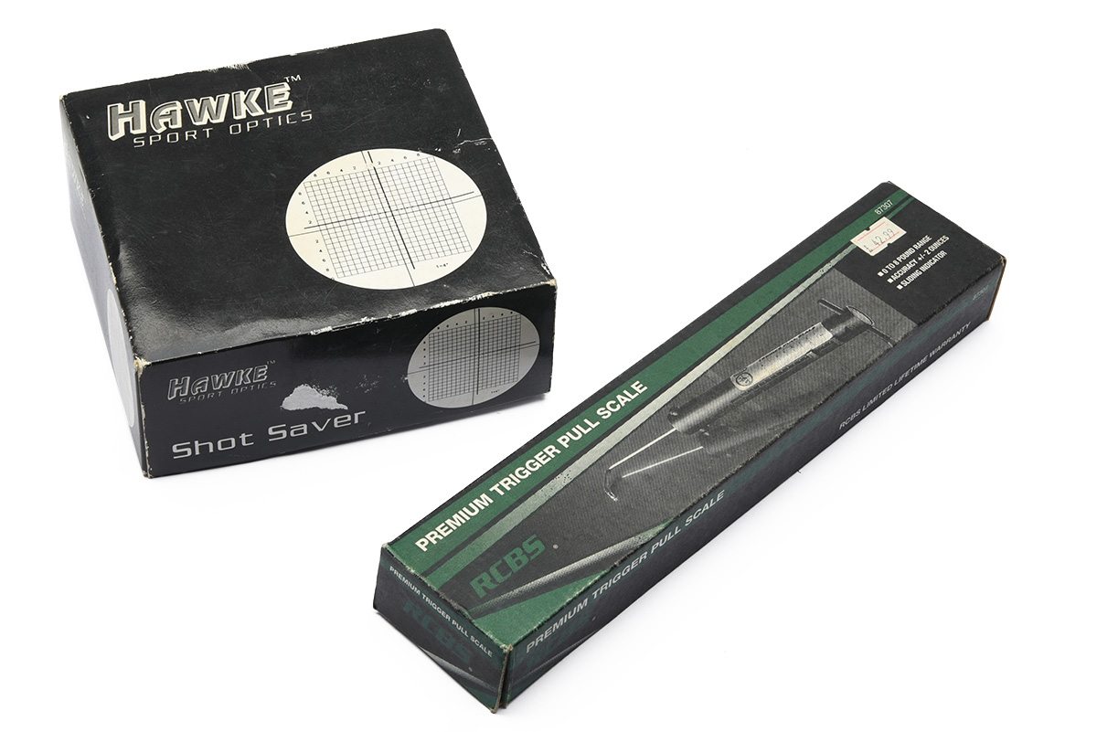 HAWKE SHOT SAVER AND RCBS TRIGGER PULL GAUGE IN BOXES (2)