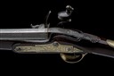 circa 1760, with iron two-stage 37in. barrel, the top-flat of octagonal section signed 'Strand, LONDON', applied fore-sight, small bayonet lug to underside of muzzle, engraved band at breech, florally engraved top-tang also featuring a stand of flags and a drum, flat lock with stepped tail, carved bevel edge, 'RICHARDS' signature in script below the pan, swan-necked cock and shallow pan, walnut hand-rail full-stock with raised moulded decoration around the top-tang, brass furniture, the heel-plate with sprung trap concealing the sporting socket-bayonet and iron drum-headed ramrod
