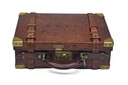 A BRASS-CORNERED LEATHER CARTRIDGE MAGAZINE,