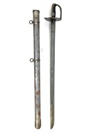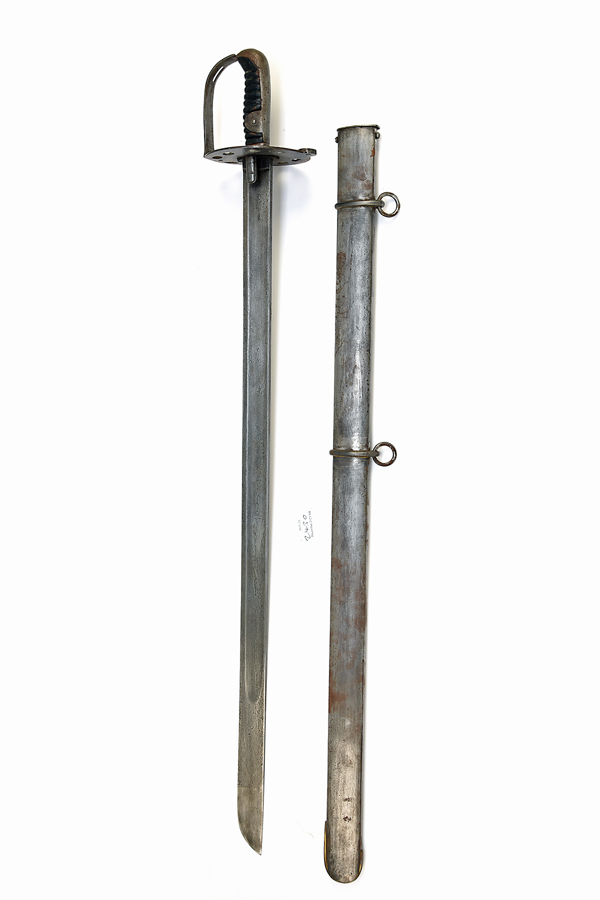 A REPRODUCTION PATTERN 1796 HEAVY CAVALRY SWORD, with 34 1/2 in. single-edged blade, steel guard, black leather grip, scabbard stamped 'OSBORN & Co. / BIRMINGHAM', two suspension rings
