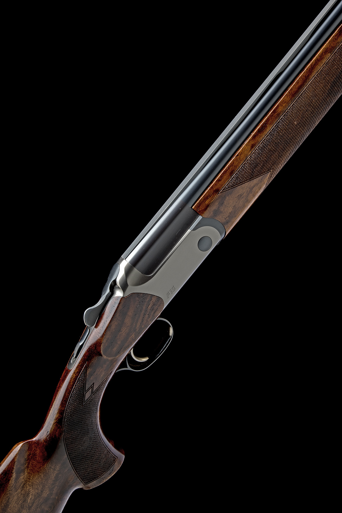 for 2017, 31 7/8in. (81cm) high performance steel proof nitro barrels serial numbered FG/006195, with tapered ventilated matt top-rib, 3in. chambers, multichokes (with spares), hold-open toplever, manual safety, triggerplate mounted barrel selector switch, satin gunmetal finish with the model designation partially red chromed in relief (missing majority of inlay), 15in. figured pistolgrip stock, slightly cast on and with left hand palm swell, including 3/4in. recoil pad, weight 7lb. 10oz., in its universal case