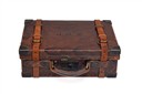 A BRASS-CORNERED OAK AND LEATHER CARTRIDGE MAGAZINE,