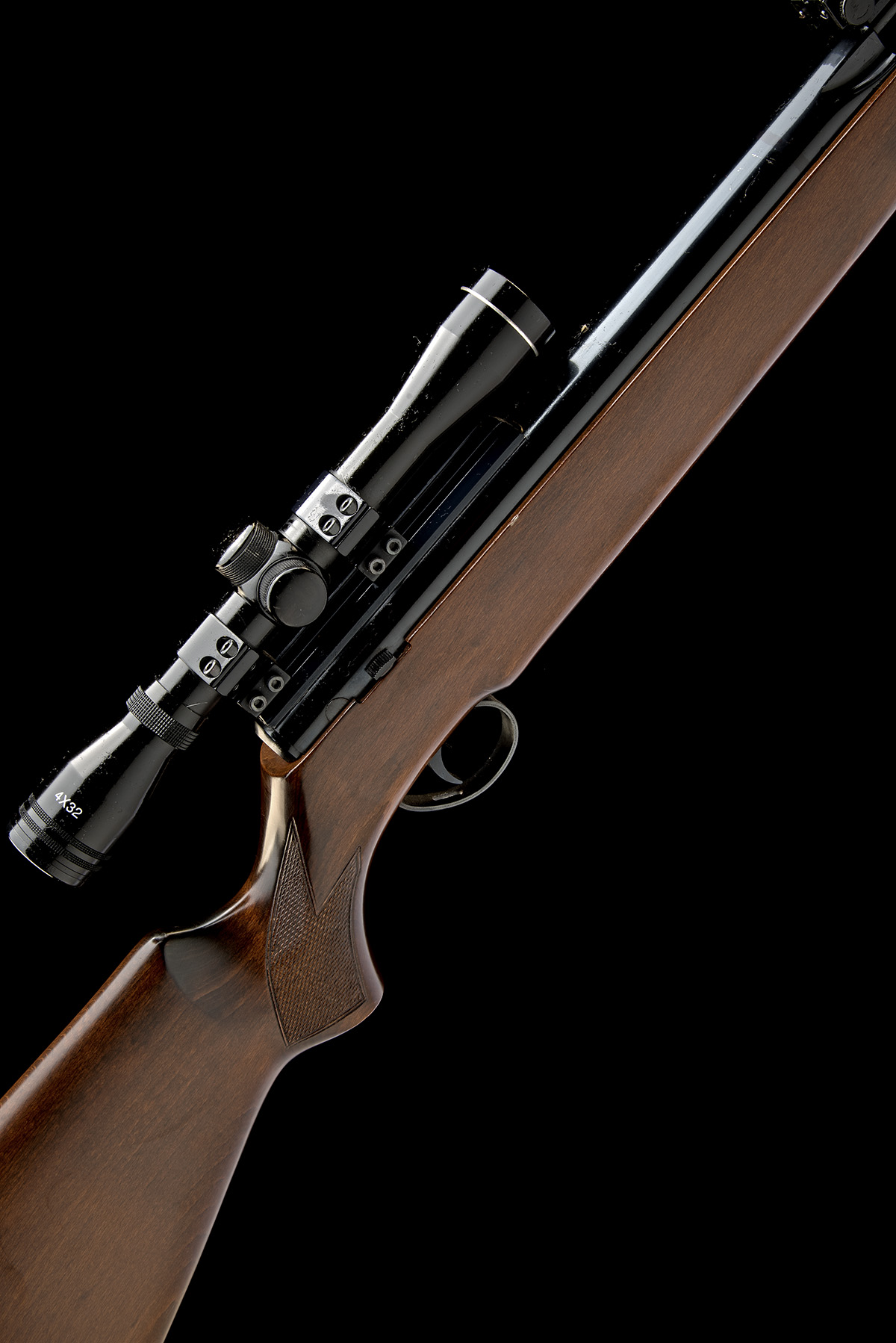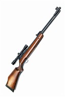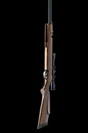 circa 2000, with blued 17 1/4in. barrel including built-on adaptor for a sound moderator, ramp fore-sight with tunnel protector, elevating and windage adjustable rear-sight, provision for a 10-shot rotary magazine (magazine absent), blued air-chamber with applied 'Maxi-Grip' rail, manual safe to rear right of air-chamber, beech half-stock with chequered pistol-grip, ventilated rubber recoil pad, blued under-barrel under-lever, fitted with an unsigned 4x32 telescopic sight, generally collector's external condition