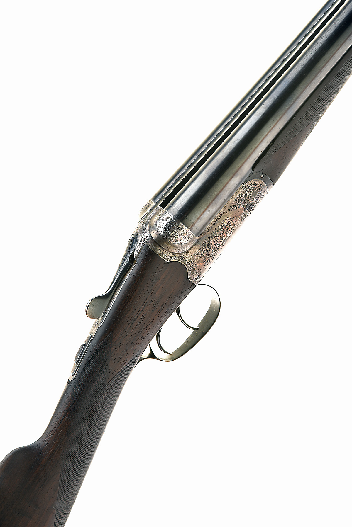 W.W. GREENER 12-BORE BOXLOCK EJECTOR, serial no. 69695, for 1947, 28in. Greener trademark nitro barrels, the rib engraved 'W.W. GREENER. MAKER. 40 PALL MALL. LONDON WORKS. BIRMINGHAM.', and with acanthus scroll detailing at the breech-end, 2 1/2in. chambers, bored approx. 1/4 and 1/2 choke, scoop-backed treble-grip action, automatic safety with silver-inlaid 'SAFE' detail, border and bold acanthus scroll engraving, retaining very slight traces of original colour-hardening and finish, 15 7/8in. stock including rubber recoil pad, weight 6lb. 14oz.