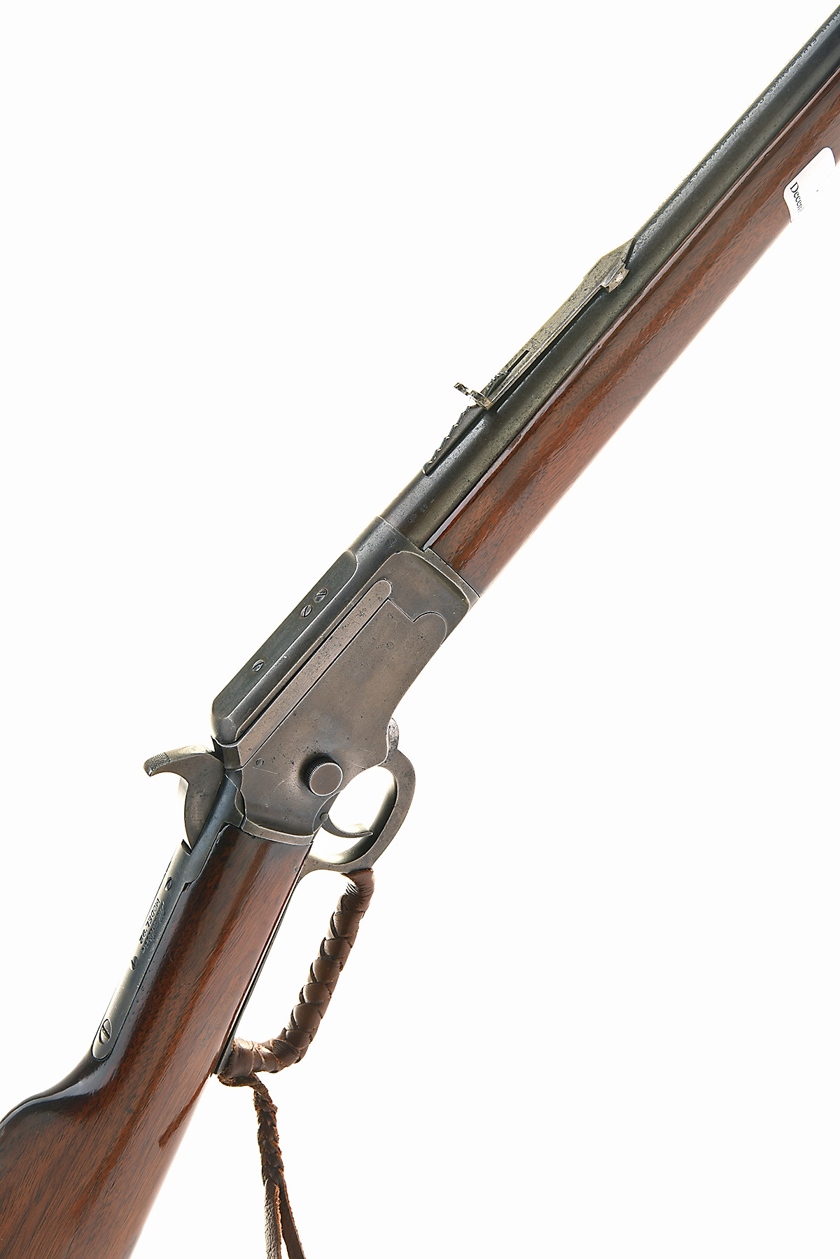 MARLIN .22 L 'MODEL 92' LEVER-ACTION REPEATING SPORTING RIFLE, serial no. 414581, circa 1900, 24in. round nitro barrel, dove-tail bead fore-sight, buckhorn rear-sight, half-cock safety, detachable side-plate, top tang marked 'Marlin Model '92', leather-bound lever, full-length tubular magazine, straight stock, steel buttplate