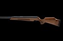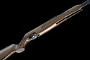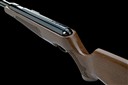 circa 2005, with mirror-blued 15 1/4in. bull-barrel, polished sliding breech, blued air-chamber with machined grooves for a telescopic sight, make and model name to the right hand side, push-button safe to rear and fish-scale chequered beech half-stock with contrasting wood pistol-grip cap and rubber recoil pad, under-barrel full-length under-lever, light marks but appearing little used