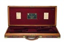JAMES PURDEY & SONS A BRASS-CORNERED OAK AND LEATHER DOUBLE GUNCASE,