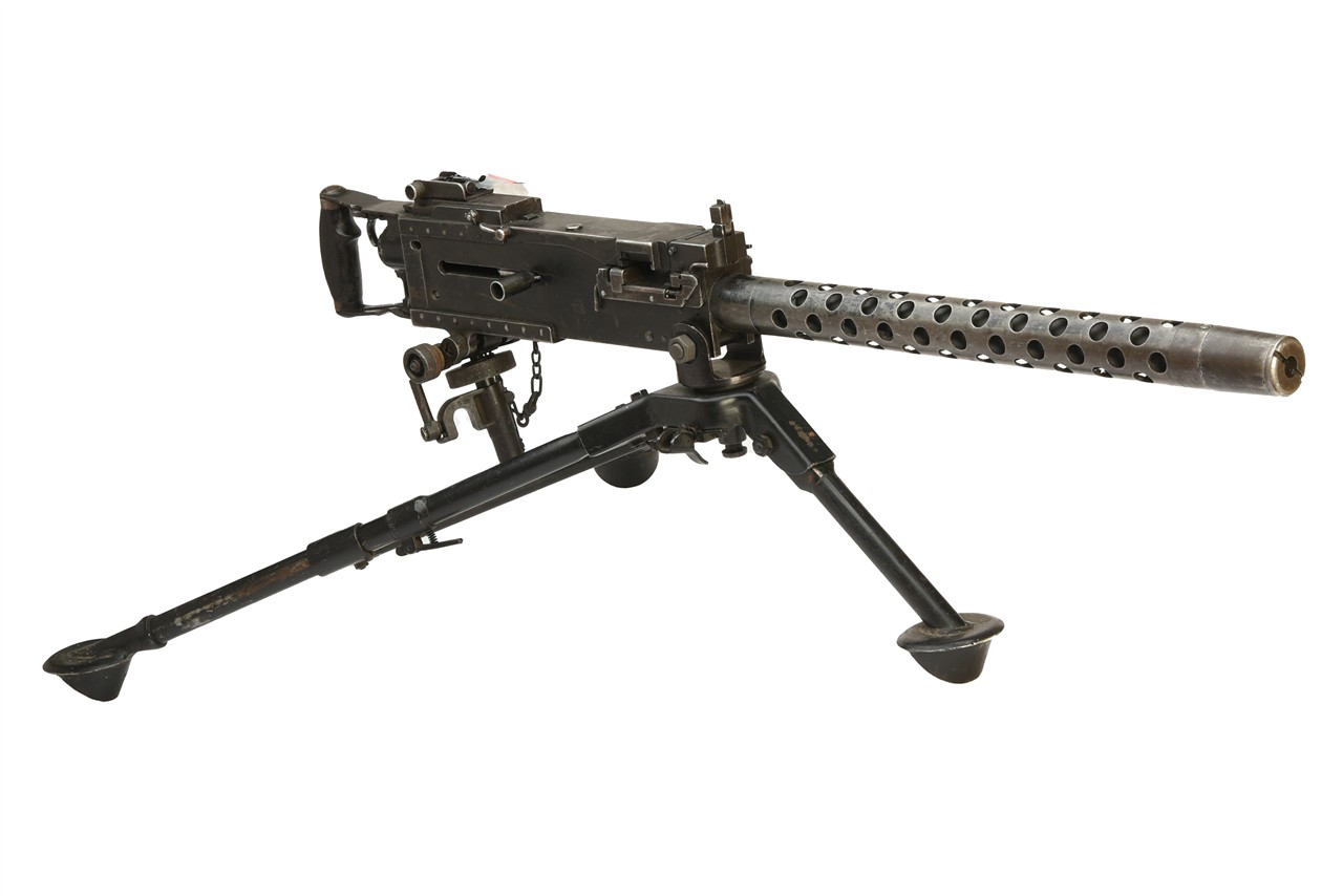 A DEACTIVATED 7.62x51mm NATO 'MODEL M1919A4 BROWNING' ISRAEL DEFENCE FORCE (IDF) CONVERSION MEDIUM MACHINE GUN, serial no. 7102227, circa 1940, 24in. heavy bull barrel with ported outer shroud, flip-up blade fore-sight, flip up notch / aperture rear sight, single spade handle with wooden grip, slab-sided receiver, the left side marked 'FABRIQUE NATIONALE D'ARMES DE GUERRE. HERSTAL-BELGIQUE.', and '7.62 Browning. No.10 support A.' (in Hebrew), and with the Israel Defense Forces (IDF) emblem, blacked finish, weight approx. 32lb., with a U.S.-M2-LC-C59331 marked folding lightweight tripod, and with US-M2 C74620 traverse and elevation (T&E) adapter, together with its EU deactivation certificate