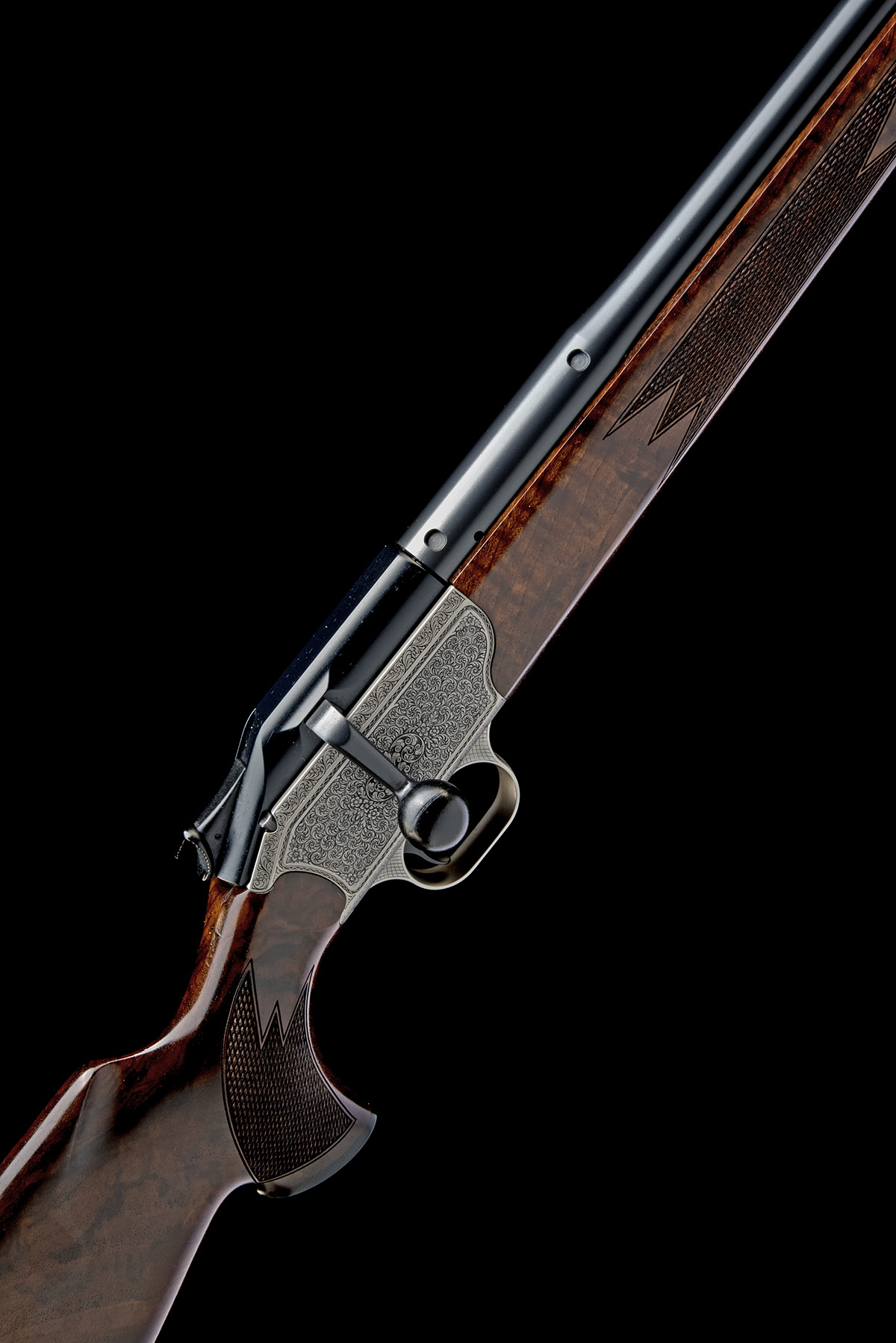 for 2005, 24in. .416 Rem. Mag. nitro barrel, dated 2005 and serial numbered 9/132356, ramp-mounted open sights, ramp-mounted blade fore-sight and ported at the muzzle, additional unsighted 22in. .308Win. nitro barrel dated for 2007 and serial numbered 9/160245, threaded at muzzle and with protector cap, quickly-detachable Blaser telescopic sight rail mount with 30mm rings, old silver receiver engraved with Grand Luxe 'Englische Arabesken', well-figured pistolgrip stock with pistolgrip-cap and white metal cap escutcheon engraved 'Davey' amid scrollwork (original cap insert in case), sling eyes, ambidextrous palm swell, 14 3/4in. pull including 3/4in. recoil pad, weight 8lb. 11oz. (.416 Rem. Mag) and 8lb. 6oz. (.308Win.), in its universal case with provision for both barrels