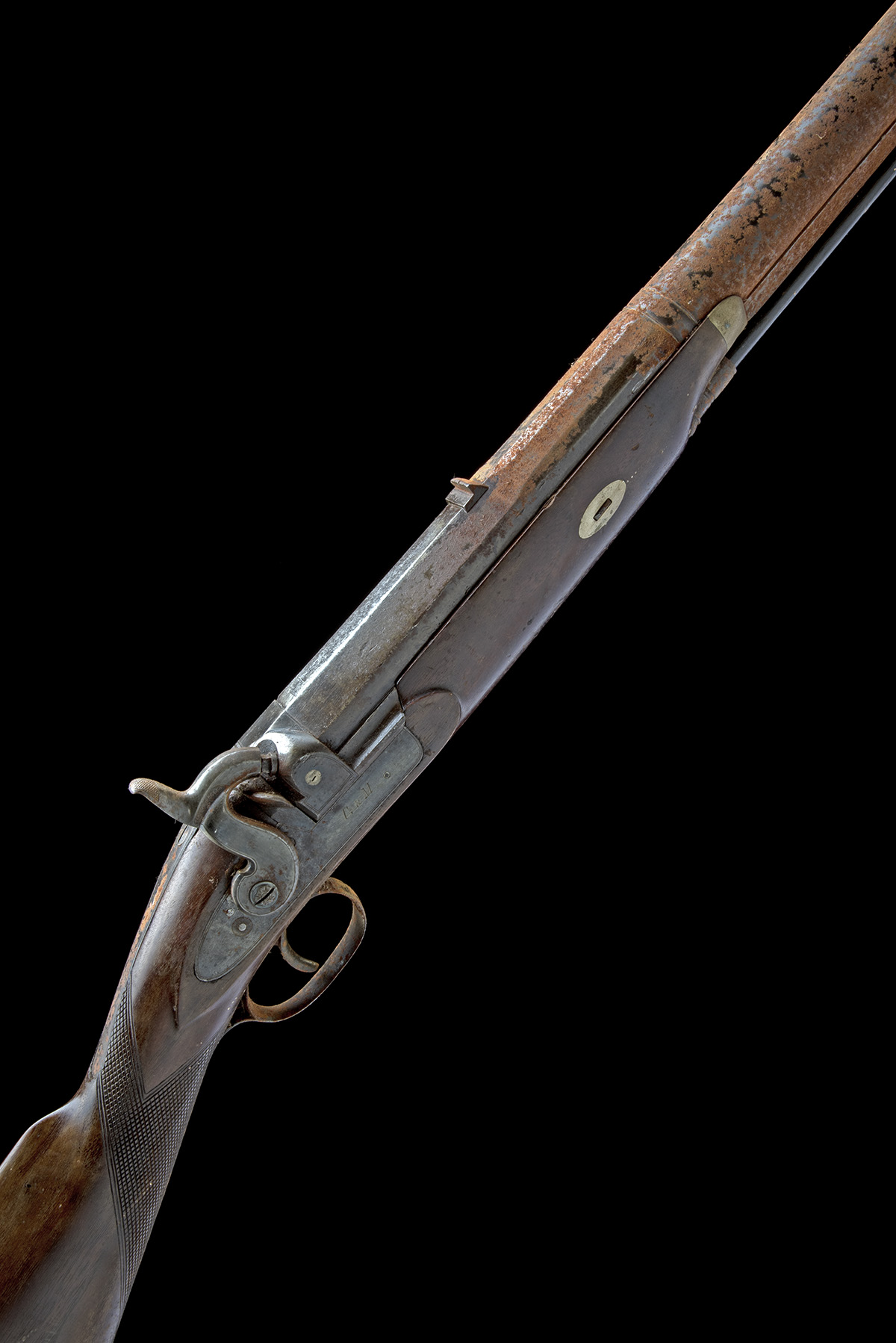 A 6-BORE PERCUSSION SINGLE-BARRELLED RIFLE FOR DANGEROUS GAME, FOR RESTORATION, no visible serial number,