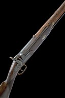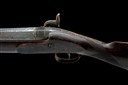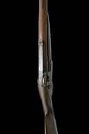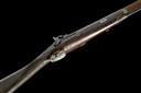 circa 1860's, with 30 1/8in. octagonal to sixteen-sided to round sighted barrel (corroded), bead fore-sight and dove-tailed notch rear-sight, top-flat of barrel engraved 'GYE & MONCRIEFF ST JAMES'S STREET LONDON', long double-screw top-tang with border engraving, borderline engraved bar-action lock signed 'G&M', walnut half-stock with chequered wrist, iron furniture, white-metal barrel key escutcheon and nose-cap, brass tipped wooden ramrod