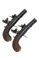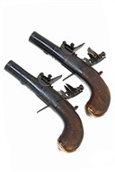 A PAIR OF 40-BORE FLINTLOCK POCKET PISTOLS SIGNED LACY & CO., no visible serial numbers,