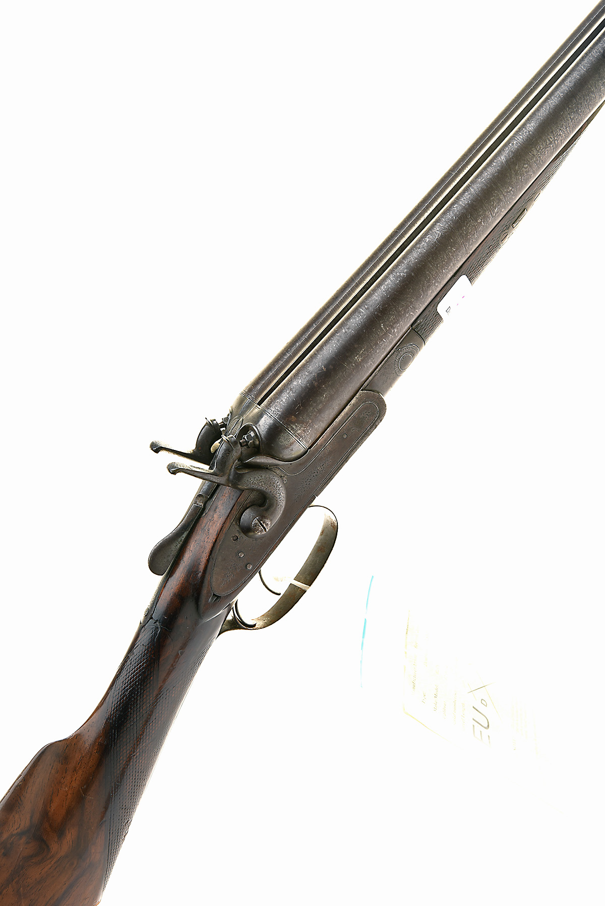 A DEACTIVATED E.M. REILLY & CO. 12-BORE TOPLEVER HAMMERGUN, serial no. 10448 / 20320, circa 1870, 29 7/8in. damascus barrels, the rib engraved 'E.M. REILLY & CO. OXFORD ST. LONDON.', border and partial acanthus scroll engraving, 14 1/8in. figured stock, together with its EU deactivation certificate