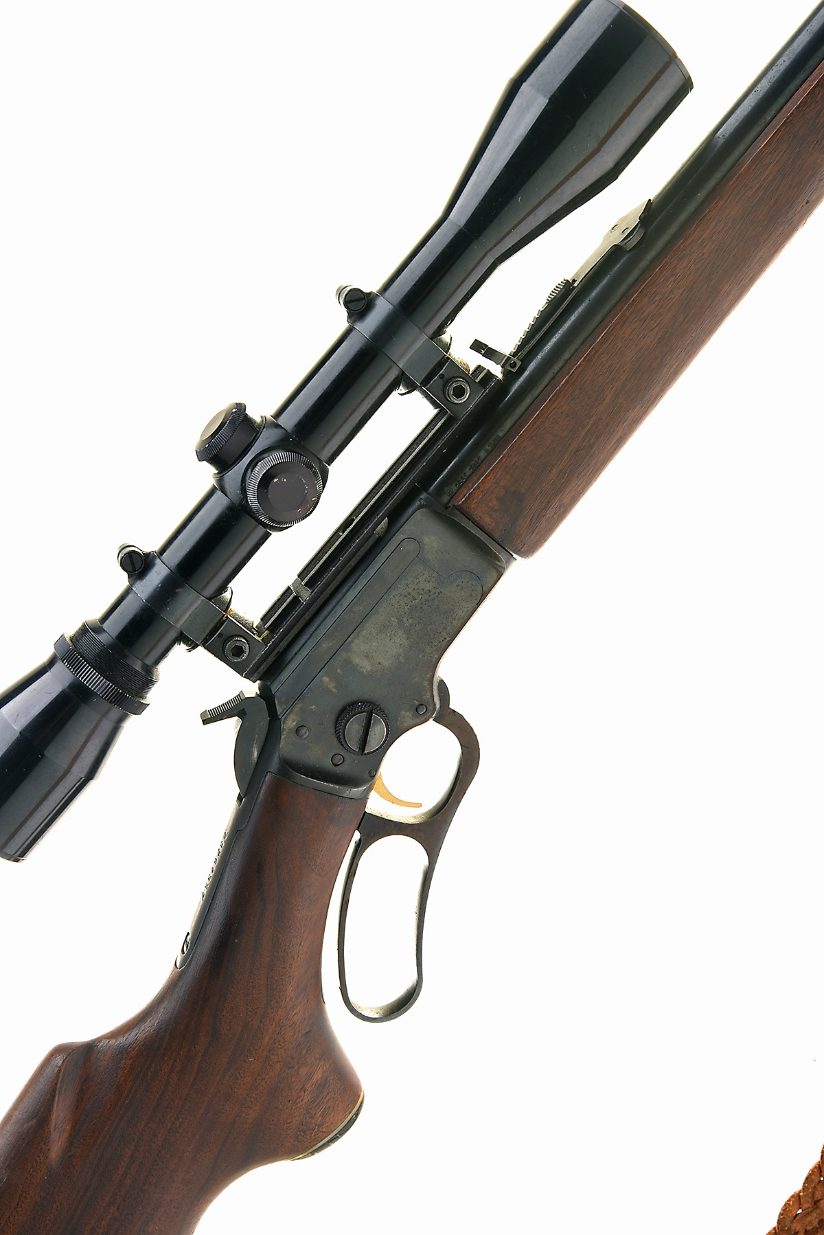 MARLIN .22 L.R. 'ORIGINAL GOLDEN-39A' LEVER-ACTION REPEATING TAKE-DOWN SPORTING RIFLE, serial no. 23267357, circa 1975, 24in. nitro barrel, ramp-mounted bead fore-sight, leaf rear-sight, fitted with an A.S.I. 4x40 telescopic sight, half-cock safety, tubular magazine, pistolgrip stock, leather sling