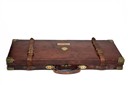 A BRASS-CORNERED OAK AND LEATHER DOUBLE GUNCASE,