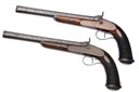 A FINE CASED PAIR OF 46-BORE PERCUSSION RIFLED TARGET PISTOLS, serial no. 1622 & 1623,