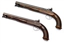 AN EXTREMELY FINE CASED PAIR OF .650 FLINTLOCK OFFICER'S PISTOLS IN THE DUELLING STYLE, serial numbered 2021,