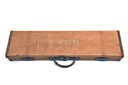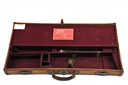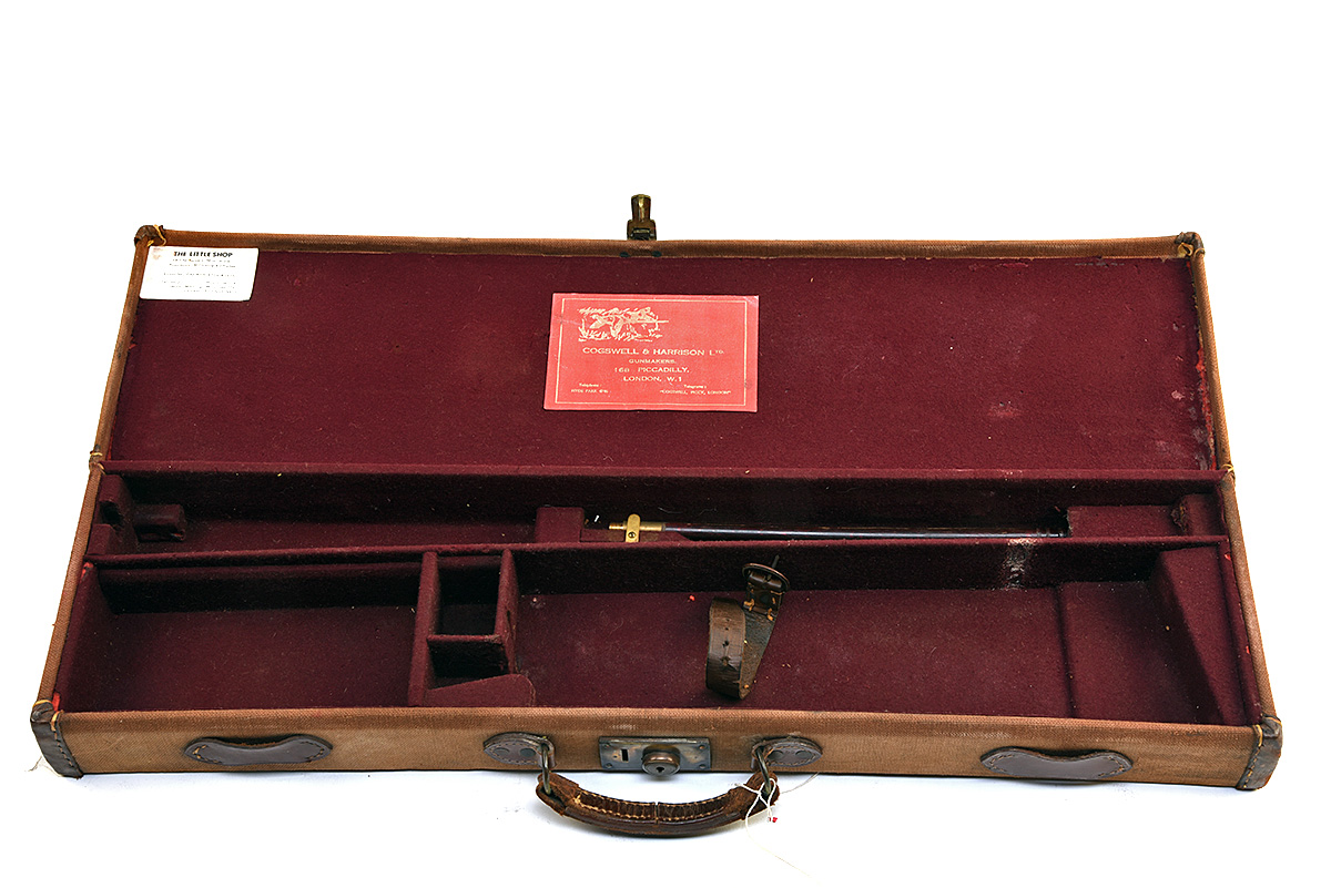 CANVAS AND LEATHER GUNCASE WITH COGSWELL & HARRISON TRADE LABEL, fitted for 30in. barrels, burgundy baize-lined interior, key missing