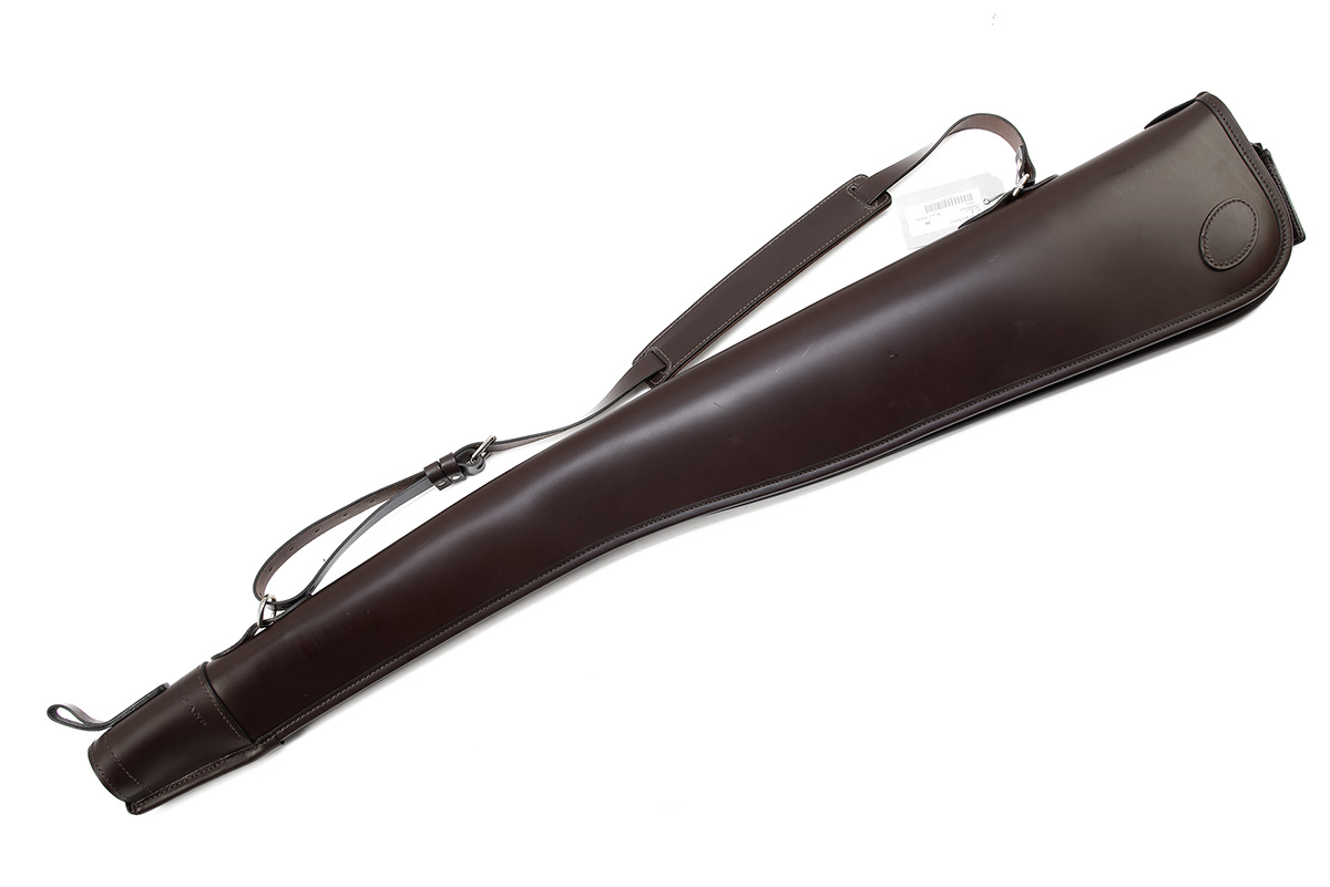 HOLLAND & HOLLAND A VIRTUALLY UNUSED FLEECE-LINED DARK BROWN LEATHER SINGLE GUNSLIP,