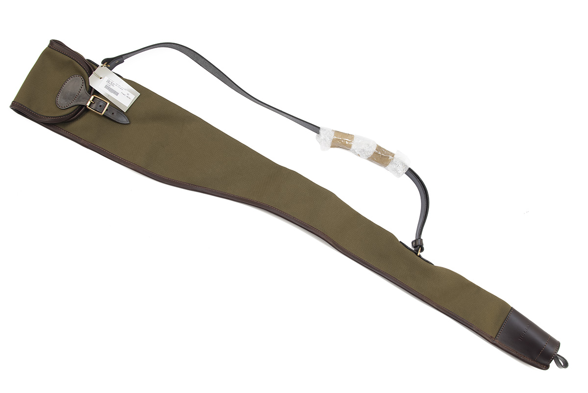 HOLLAND & HOLLAND A VIRTUALLY UNUSED GREEN CANVAS AND DARK BROWN LEATHER SINGLE GUNSLIP,