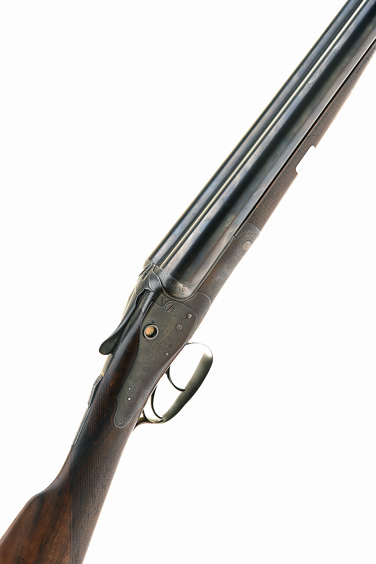 J. BLANCH & SON 12-BORE W. & C. SCOTT & SONS 1878 PATENT BACK-ACTION SIDELOCK NON-EJECTOR, serial no. 5365, circa 1885, 28in. nitro reproved blacked damascus barrels (in 1960, some dents), sunken rib engraved 'J. BLANCH & SON. 29 GRACECHURCH STREET. LONDON.' (faint), 2 1/2in. chambers, bored approx. true cyl. and full choke, W. & M. Scott and T. Baker patent barrel-cocking hammerless action, patent no. 761 of 1878, use number 1778, W. & C. Scott patent toplever spindle, Scott patent gas check system, patent no. 617 of 1882, use number 1150, W.& C. Scott patent automatic block safety, Scott patent crystal cocking-indicators, patent no. 3223 of 1875 with gold-washed internals, Needham & Hinton patent intercepting sears, patent no. 706 of 1879, fine acanthus scroll and floral bouquet engraving, the lockplates signed 'J. BLANCH & SON', blacked finish overall, 14in. figured stock, the left side stamped 'MURRAY', fore-end with J. Blanch & Son 'Improved snap bolt' release catch, weight 6lb. 8oz.