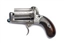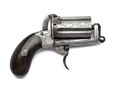 A SPANISH 7mm 6-SHOT PIN-FIRE PEPPERBOX FIST PISTOL, SIGNED ORBEA HER EIBAR, serial no. 1435, circa 1870s, with 2 in. scroll-engraved fluted barrel cluster, scroll-engraved open frame stamped '1435', folding trigger with hinge stamped 'ORBEA HER / EIBAR', wooden bag-shaped grips