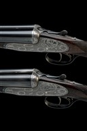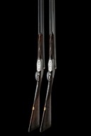 A SCARCE, EARLY PAIR OF 12-BORE ROUNDED-BAR GAME-SCENE ENGRAVED EASY-OPENING SIDELOCK EJECTORS, serial no. 6601 / 2,