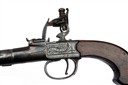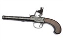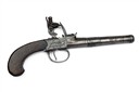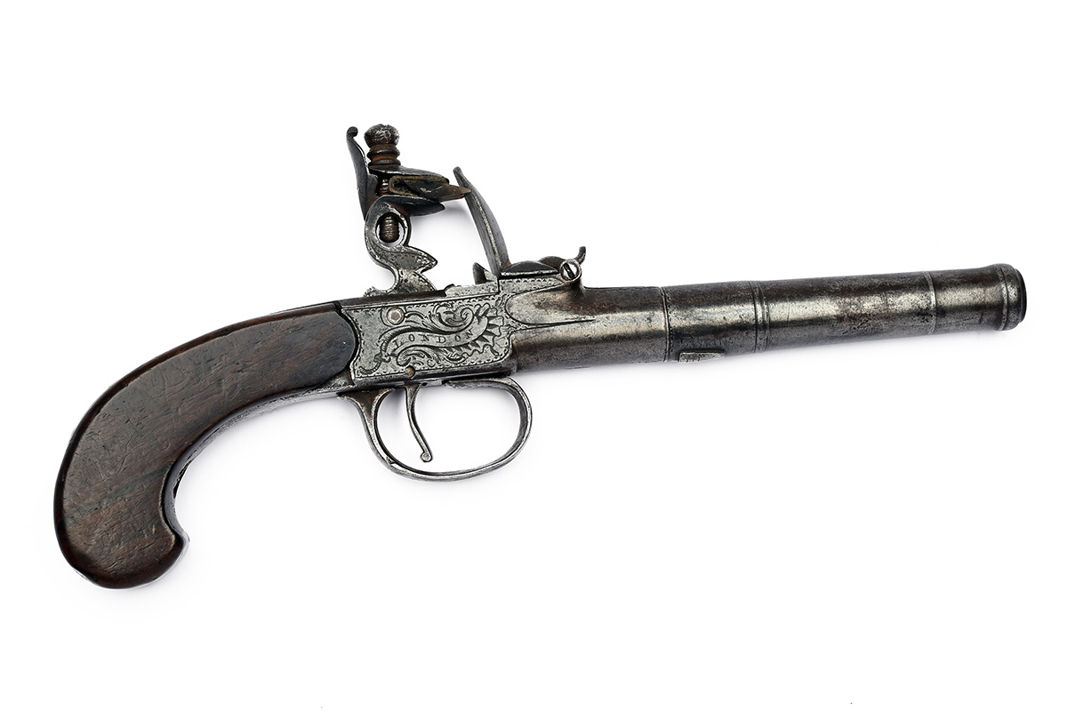 A 60-BORE FLINTLOCK CANNON-BARRELLED BOXLOCK TRAVELLING PISTOL SIGNED BARBAR LONDON,