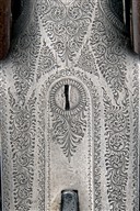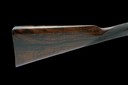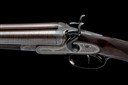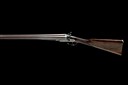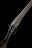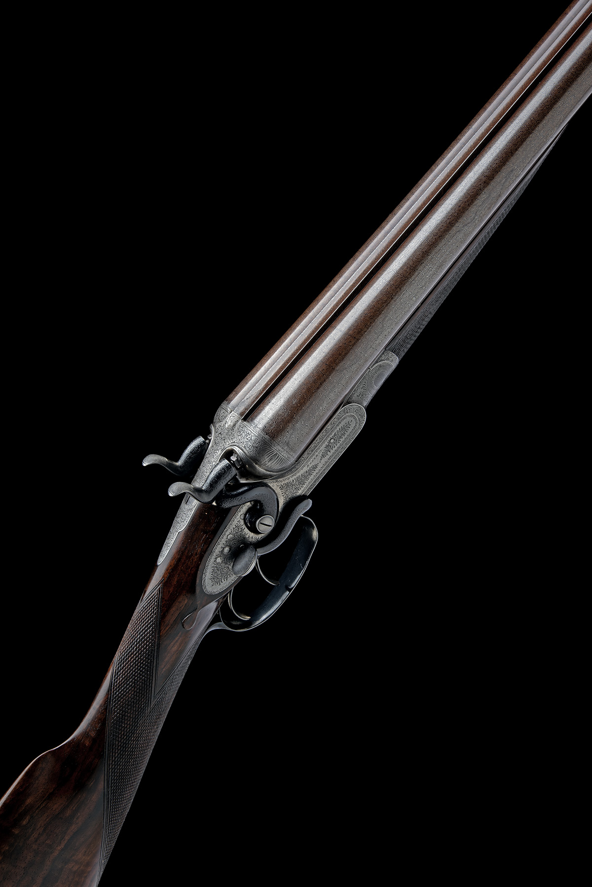 for 1882, 30in. nitro reproved damascus barrels (in 1975), the rib engraved 'BOSS & CO. 73, ST. JAMES'S STREET. LONDON.' (rubbed), 2 1/2in. chambers, bored approx. true cyl. and 1/4 choke, carved percussion fences, rebounding sidelocks, fine acanthus scroll engraving with ornate bordering, brushed and reblued finish, 14 1/4in. figured stock with blued steel heel and toe plates, the fore-end with grip-catch release and minor repairs to wood, weight 6lb. 15oz.