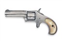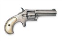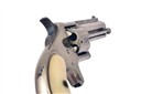 circa 1876, with octagonal form nickel-plated 2 3/4in. barrel with integral raised and signed sighting rib and moulded ejector housing below, two-piece solid frame, fluted five-shot cylinder and smooth factory mother of pearl birdshead grip-panels set into frame, replated in antiquity with some frosting and lifting