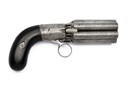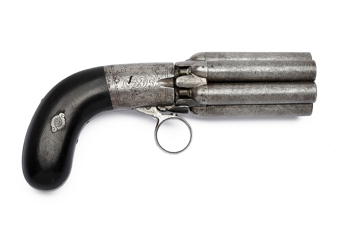 A 100-BORE PERCUSSION MARIETTE'S PATENT PEPPERBOX REVOLVER, no visible serial number,
