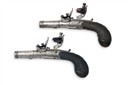 A PAIR OF 80-BORE FLINTLOCK ROUND-BODIED MUFF-PISTOLS SIGNED WOOD, YORK, no visible serial numbers,