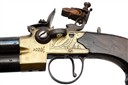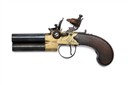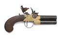 A 52-BORE FLINTLOCK BRASS-BODIED TAP-ACTION OVER AND UNDER TRAVELLING PISTOL, no visible serial number,