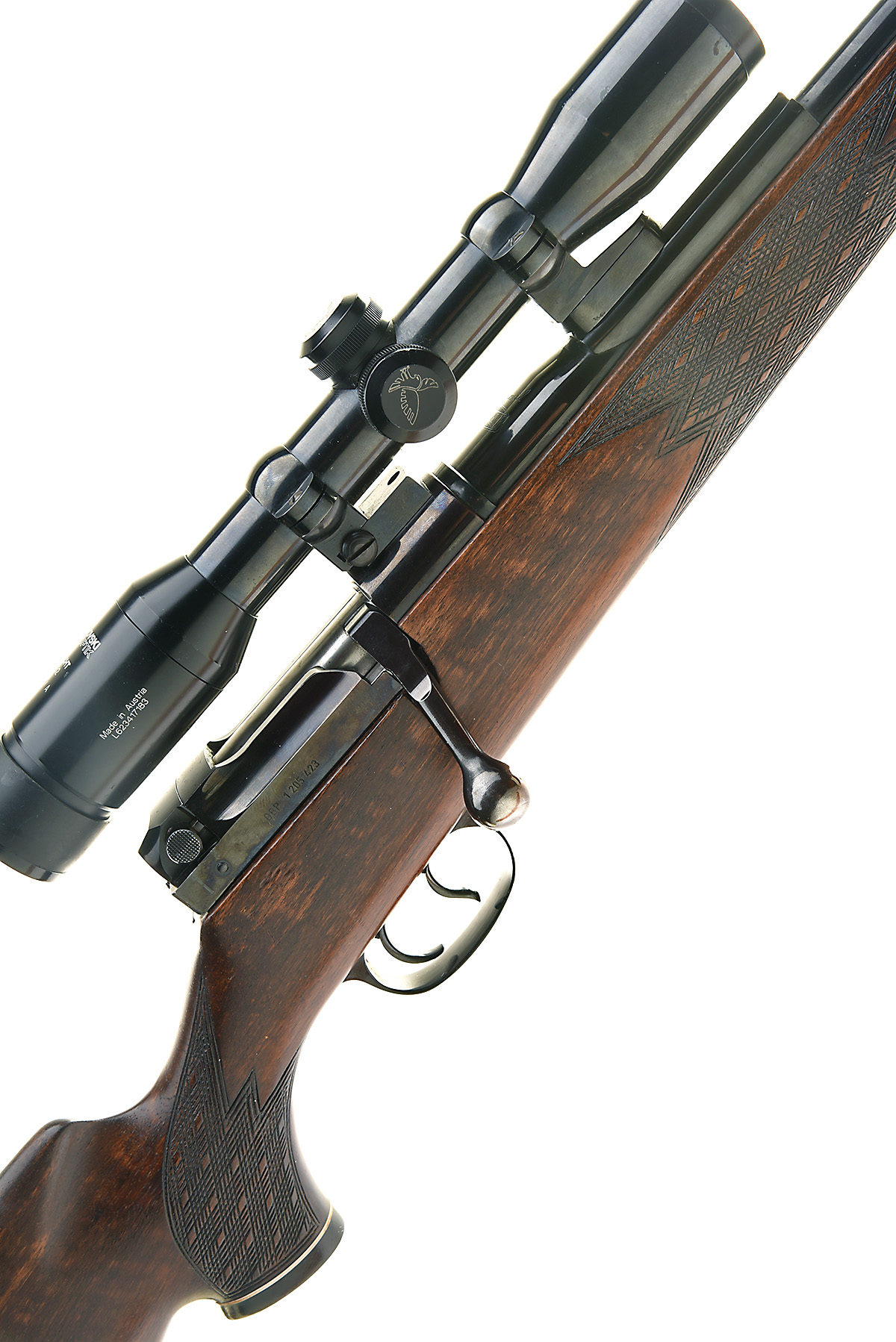 MAUSER .30-06 'MOD 66' BOLT-MAGAZINE SPORTING RIFLE, serial no. G05583, circa 1970, 24 1/2in. nitro barrel, hooded ramp-mounted blade fore-sight,no rear-sight, fitted with a Swarovski optik Habicht 4x32 Nova telescopic sight, manual safety, set triggers, internal magazine, well-figured pistolgrip stock, recoil pad and cheekpiece, sling swivels