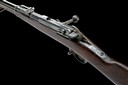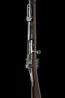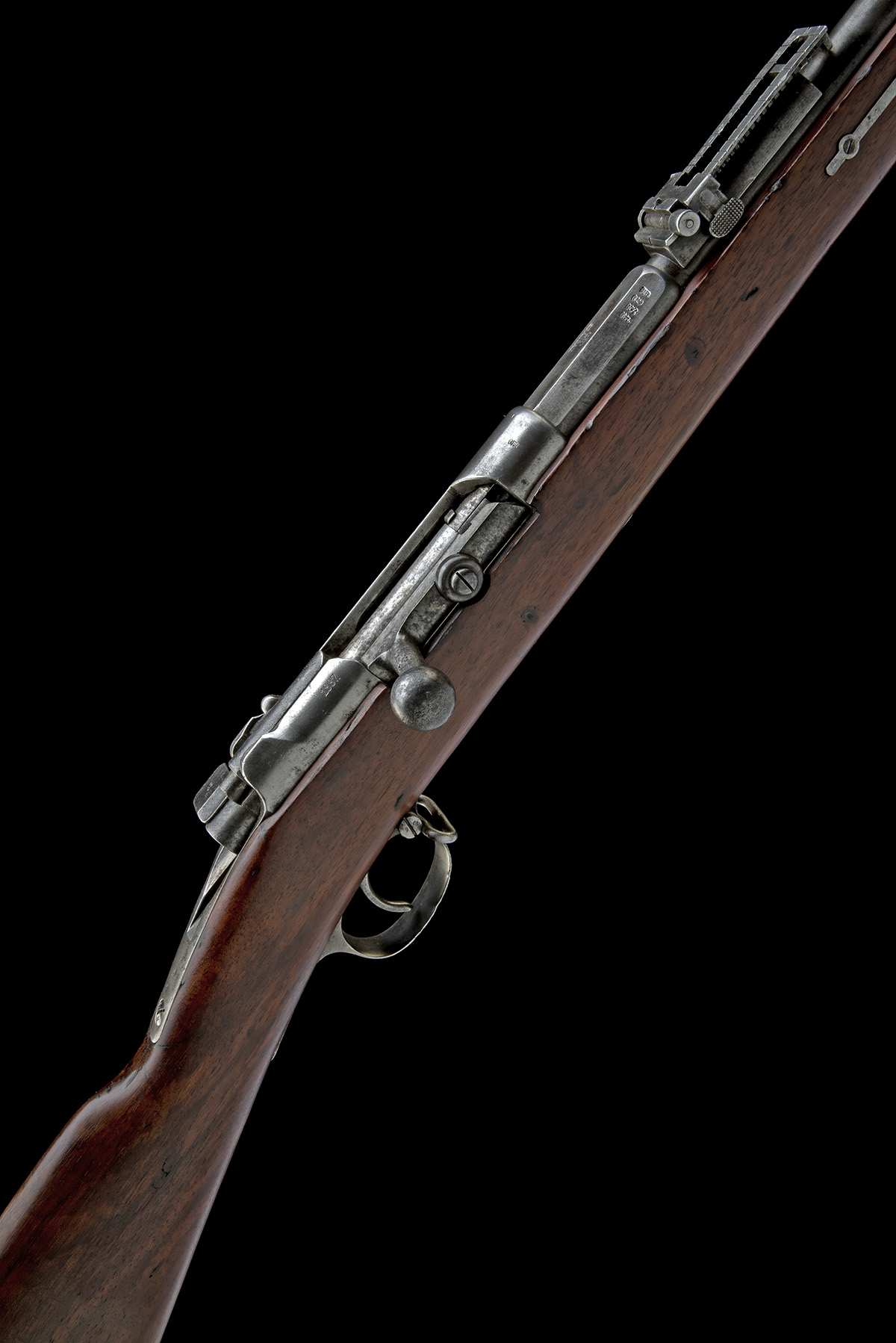 dated for 1887, with 32in. barrel, block and blade fore-sight, elevating ladder rear-sight, the octagonal breech-section of barrel signed 'SPANDAU', rounded receiver with straight-handled bolt (numbered 5357), flag safe to rear, walnut full-stock (traces only of ordnance stamps), iron furniture including two barrel-bands and nose-cap with stacking-spike, refinished