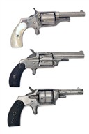 all circa 1875-85, the first a 'C.S. SHATTUCK', with octagonal 2 3/4in. barrel signed by the maker, solid frame with patented swing-out fluted cylinder, spur trigger and exposed hammer and smooth mother of pearl grips, the second an 'OTIS A. SMITH', with round 3in. barrel, moulded top-rib of Smith & Wesson style, solid frame with fluted cylinder and chequered gutta-percha grips, the last a 'DICTATOR' model by 'HOPKINS & ALLEN', 2 3/4in. octagonal barrel, solid frame with signature to top-strap, plain cylinder with roll engraved bands and chequered and embossed gutta percha grips, each with a strong amount of original finish