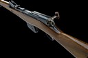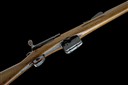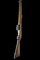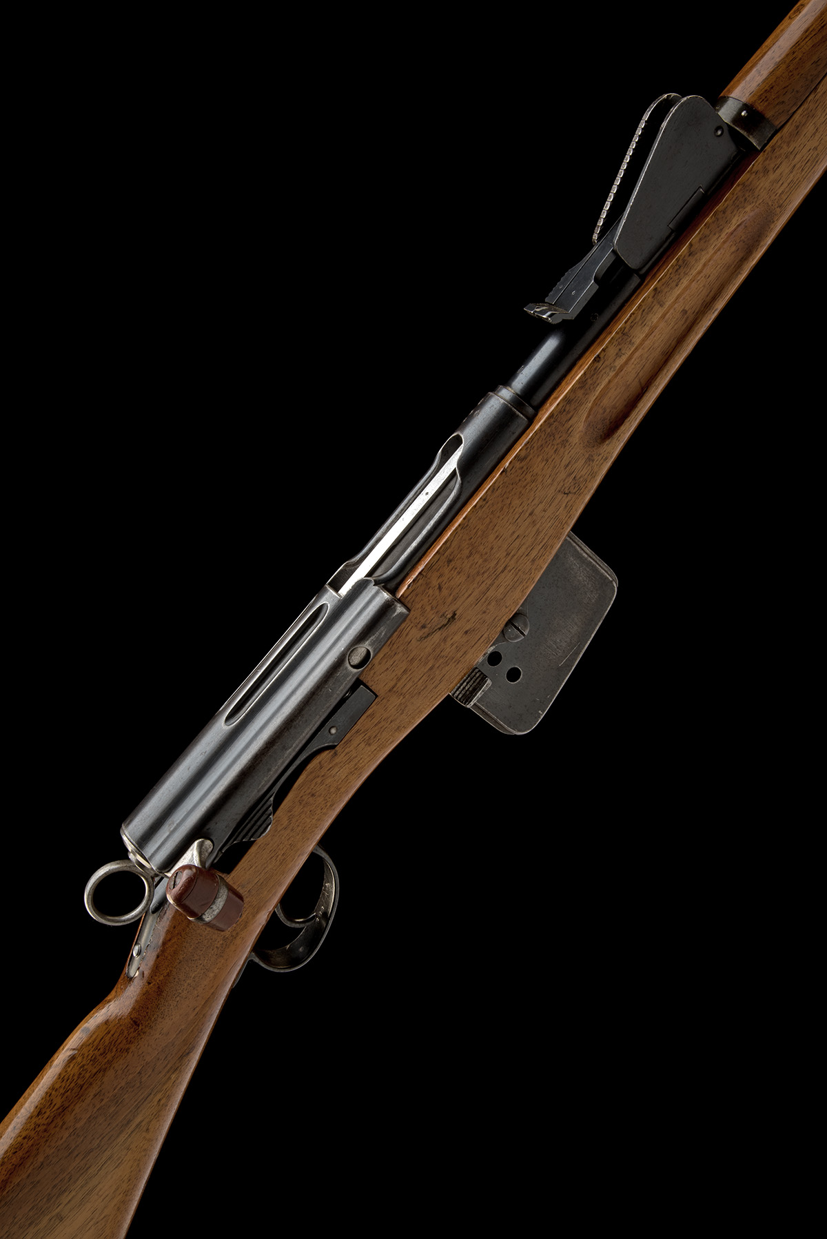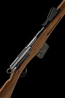 circa 1895, with 30 3/4in. barrel, dove-tailed blade fore-sight, elevating tangent rear-sight, blued blind-fluted receiver with brushed bright straight-pull toggle bolt and safety ring to rear, walnut full-stock with full hand-guard and stacking spike below muzzle, matching numbers