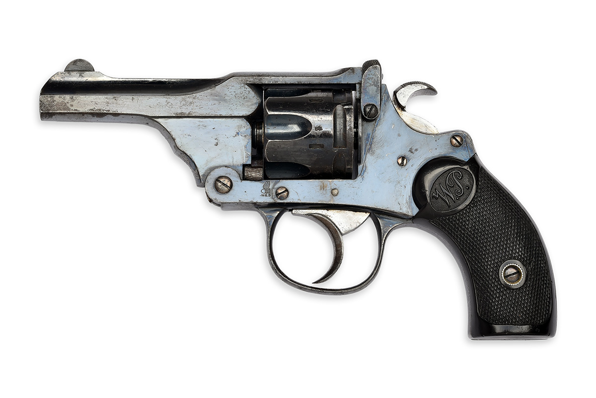 A GOOD .320 (S/R) WEBLEY & SCOTT W.P. REVOLVER RETAILED BY ALEX MARTIN, GLASGOW, serial no. 1418, with period holster,