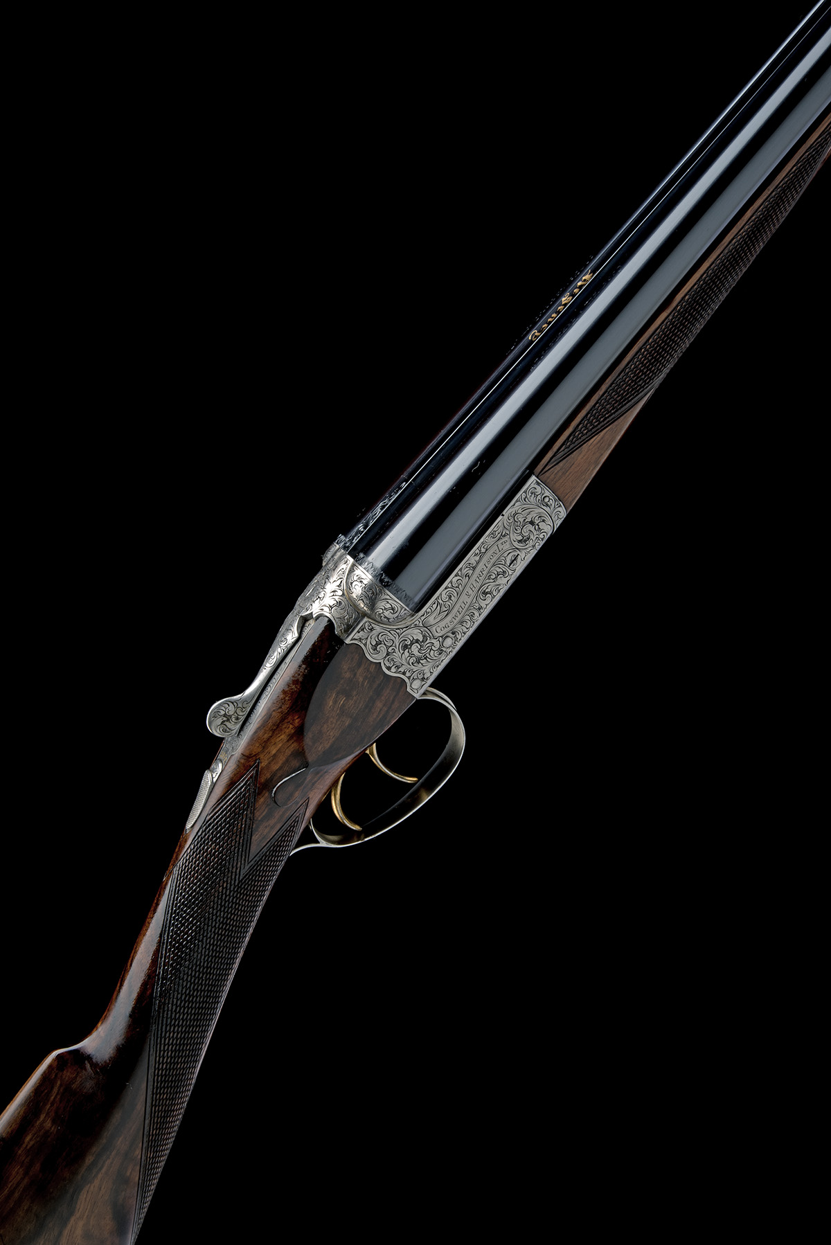 for 1973, 26in. nitro barrels, the rib gold-inlaid in old English style 'Regency', the tubes engraved 'COGSWELL & HARRISON LTD. 168, PICCADILLY. LONDON. W.1.', 2 3/4in. chambers, bored approx. imp. cyl. and 1/4 choke, scroll-back action, automatic safety with gold-inlaid 'SAFE' detail, gold-washed triggers, rolled-edge triggerguard, the whole carved with bold acanthus work, the sides with scrolling banners engraved 'COGSWELL & HARRISON', 14 1/4in. figured stock (minor setting crack to rear of top tang), weight 5lb. 10oz.