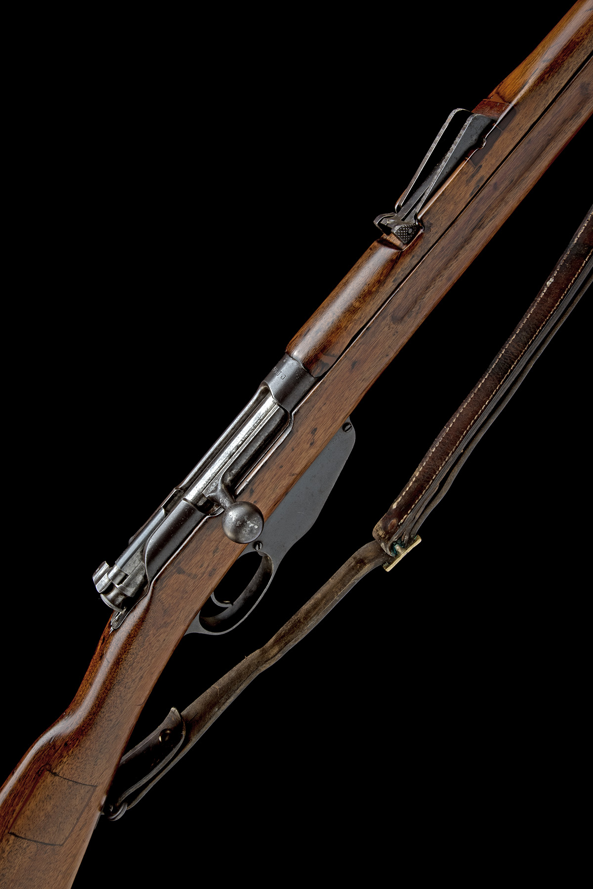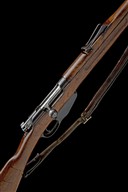 dated for 1917, with partially exposed 32in. barrel, raised dove-tailed fore-sight, elevating rear-sight, rounded receiver signed 'HEMBRUG' together with the date, charger cut-out, straight handled bolt (miss-matched number), flag safe to rear, walnut three-quarter stock with inlet repair forward of the central butt (probably from a previous sling fitting), a roundel stamped with a crown and intertwined 'V.V's', wooden handguard around the rear-sight, iron furniture including integral magazine housing, single barrel band and nose-cap (cleaning rod absent), fitted with a possibly period leather sling