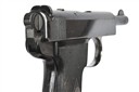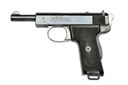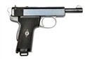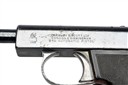 circa 1912, with blued exposed 5in. barrel, blued slide with top ejection aperture and push-button release, the left side with maker's name and address, grip safety, exposed hammer, blued frame with plated trigger guard bow, chequered hard rubber grips, the left with lanyard loop at heel and detachable magazine, much finish remaining