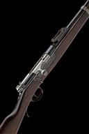 dated for 1886, with blued 32 1/2in. sighted barrel numbered '691', rounded receiver, brushed bright bolt with straight bolt handle numbered 'PP148', the action body stamped 'OE.F.G. STEYR 1886', a ribboned crown over 'L.I.' and 'M1886', walnut full-stock (refinished) with concealed full-length magazine tube and complete with cleaning rod mounted in a channel on the left hand side of fore-end, much finish remaining, miss-matched numbers, fair amount of finish