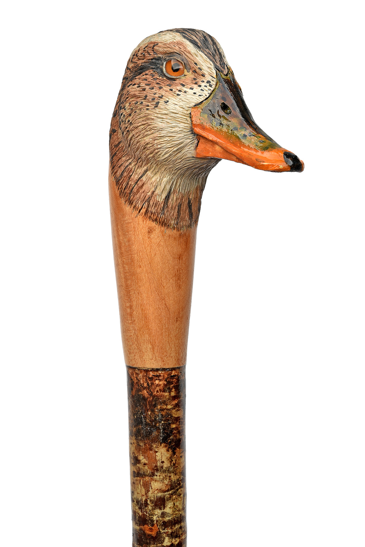 with ashwood type shaft, the top carved in the form of a duck, measuring approx. 49in. in length