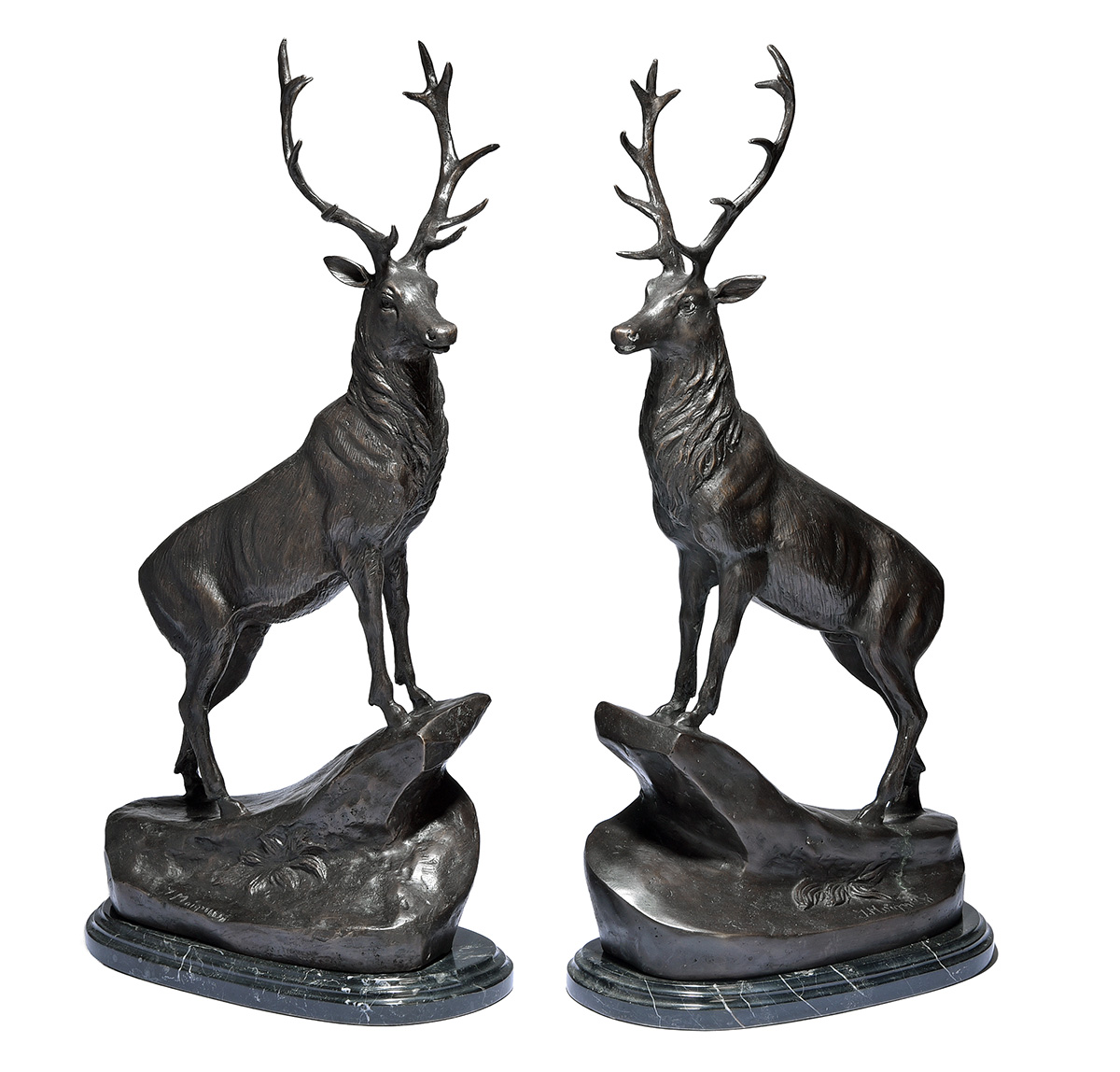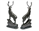A PAIR OF BRONZE STAGS,