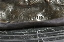each standing on a rocky outcrop and mounted on a black marble oval stand, 30in. x 13in. x 8in., signed T. MAIGNIERY