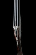 circa 1905, 28in. sleeved nitro barrels (in 1997), the rib with re-engraved 'J. BURROW MAKER 116 FISHERGATE. PRESTON.' address, 2 3/4in. chambers, bored approx. 1/4 and 1/2 choke, treble-grip action with removable striker discs, carved stylised leaf fences, automatic safety with gold-inlaid 'SAFE' detail, gold-inlaid cocking-indicators, the left lockplate with barrel selector slide and gold-inlaid 'L' and 'R' details, double rolled-edge triggerguard, profusely engraved with fine acanthus scroll engraving, the lockplates with bold stylised art nouveau scrollwork on a matted background interspersed with mythical birds and a winged lion battling a serpent, 14 1/4in. well-figured stock (slightly cast on for the left shoulder) with engraved steel heel and toe plates, weight 6lb. 10oz.