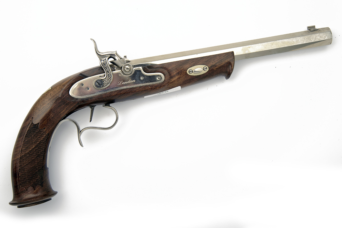 A REPRODUCTION .45 PERCUSSION PISTOL SIGNED ARDESA, MODEL W. PARKER, LONDON, serial no. 14-13-017340-10,
