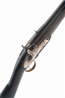 A 12-BORE PERCUSSION DOUBLE-BARRELLED SPORTING-GUN SIGNED PERRINS & SON, no visible serial number,